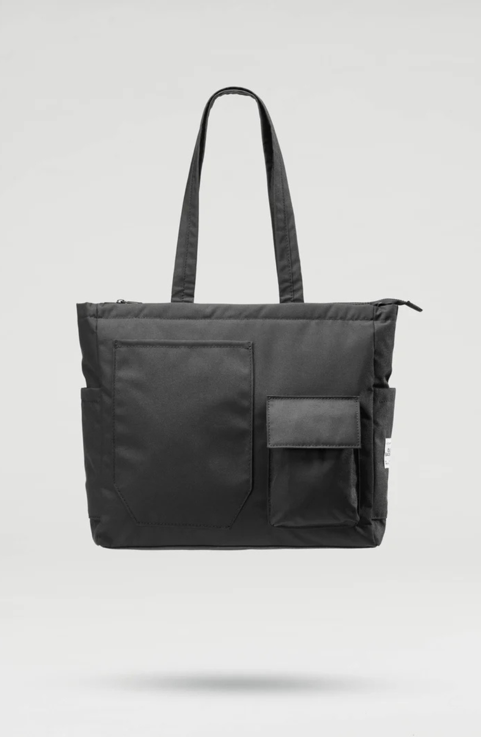 A revision of our iconic Cosmic Tote, we have improved especially the interior, adding an inner padded compartment for laptops (for devices up to 14"), bottle holder and zippered pocket.